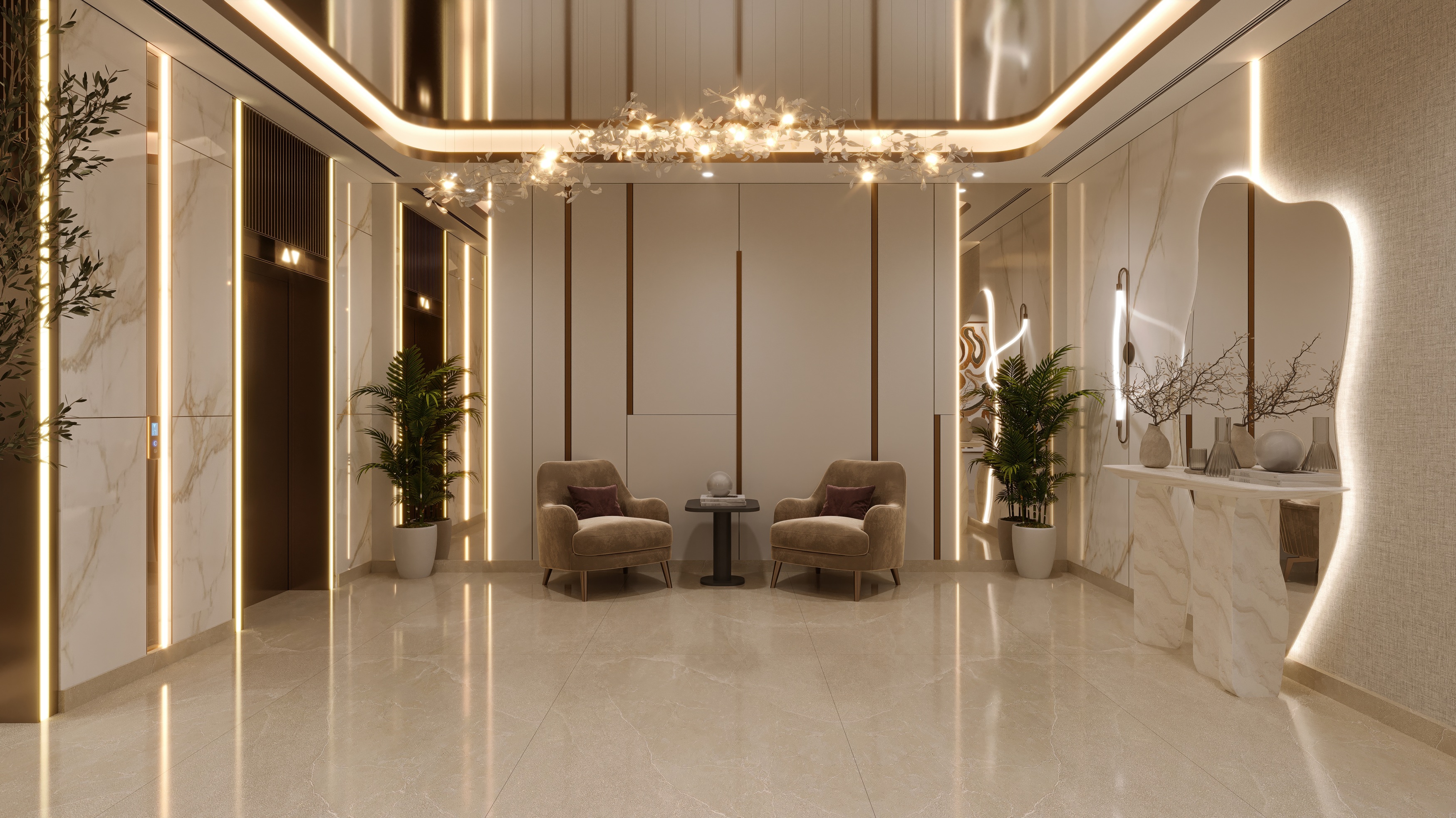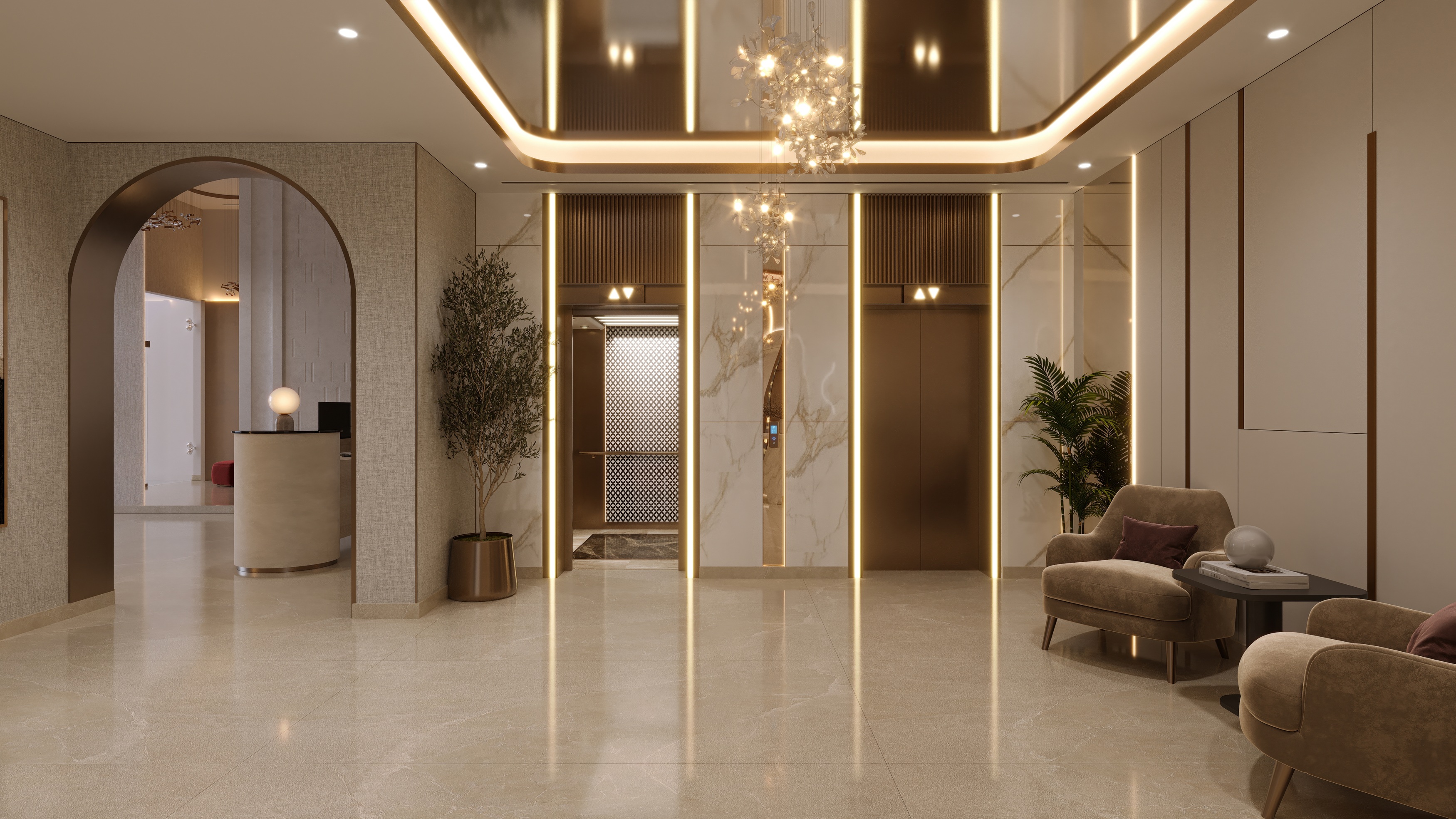 Florus Residences Lobby, designed with a refined modern sensibility, creates an atmosphere of quiet sophistication through its thoughtful composition of light, texture, and spatial balance. The design avoids excess, instead focusing on harmony and subtle elegance to establish a space that feels both welcoming and elevated.